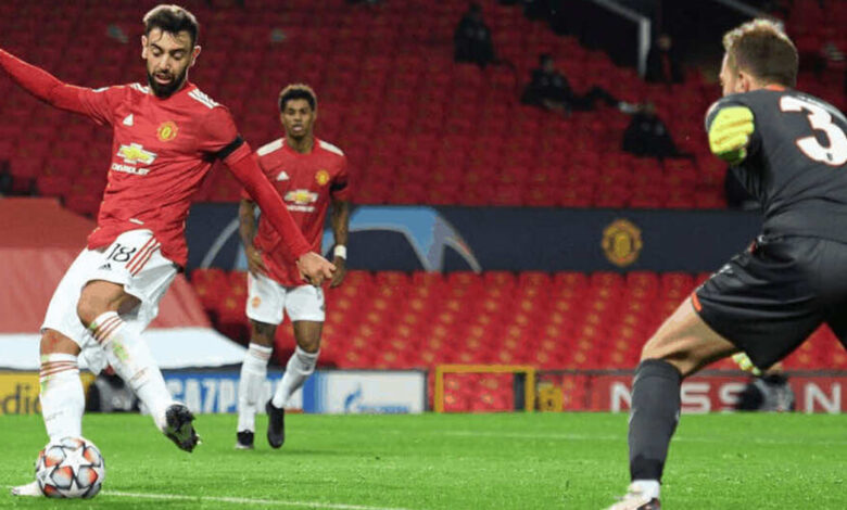 وحافظ مانشستر يونايتد على صدارة المجموعة الثامنة برصيد 9 نقطة، بعد أن قاده برونو فيرنانديز للفوز بتسجيله لهدفين في غضون 20 دقيقة، قبل أن يتكفل راشفورد ودانييل جيمس بالهدفين الثالث والرابع.
