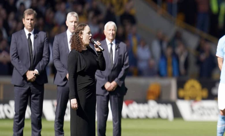 وأدت الفنانة الاوبرالية الإنجليزية «سامانثا أوكسبرو – Samantha Oxborough» النشيد قبل دقائق من مباراة ولفرهامبتون ومانشستر سيتي التي انتهت بفوز سهل للنادي الضيف بثلاثية نظيفة لجاك جريليش وإيرلينج هالاند وفيل فودين.
