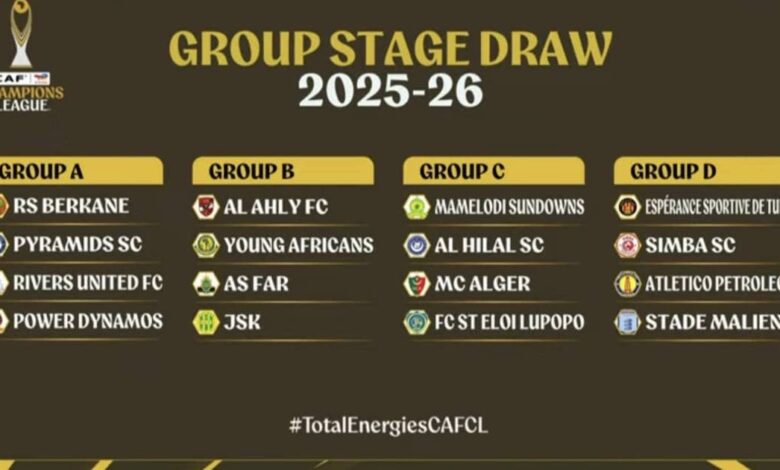 جدول مواعيد مباريات مجموعات دوري أبطال إفريقيا 2025-2026