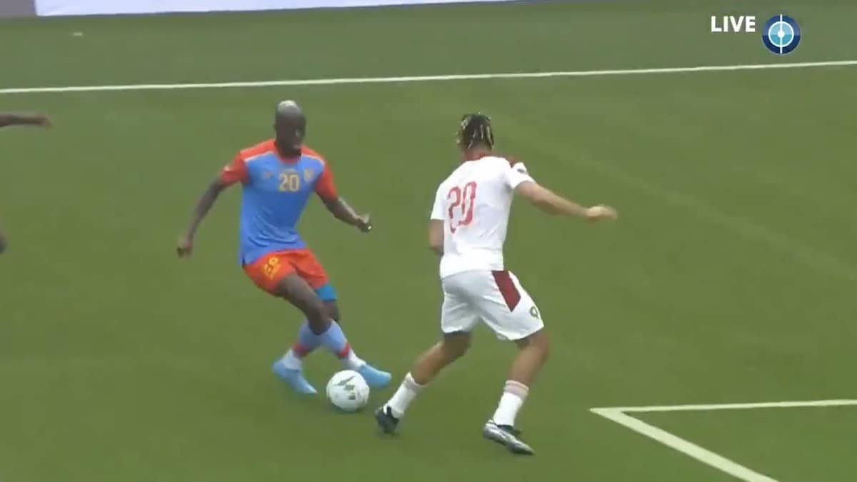 وأرسلت تمريرة طولية نحو أيوب الكعبي على حدود منطقة جزاء منتخب الكونغو الديمقراطية في هجمة مرتدة، رفض تسلمها، وقرر تمهيدها بالصدر داخل المنطقة نحو تيسودالي الذي سددها بلمسة واحدة على أقصى يمين الحرس.